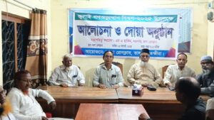 মোঃ শামীম হোসেন :: গণঅভ্যুত্থান দিবস উপলক্ষে তালা প্রেসক্লাবে আলোচনা ও দোয়া অনুষ্ঠান অনুষ্ঠিত হয়েছে।মঙ্গলবার (৫ আগস্ট) সন্ধ্যা ৭টায় তালা প্রেসক্লাব হলরুমে এসভা অনুষ্ঠিত হয়। প্রেসক্লাবের সভাপতি এমএ হাকিমের সভাপতিত্বে অনুষ্ঠানে প্রধান অতিথির বক্তব্য রাখেন, সাতক্ষীরা-১(তালা-কলারোয়া) আসনে জামায়াত মনোনীত সংসদ সদস্য পদপ্রার্থী অধ্যক্ষ মোঃ ইজ্জত উল্লাহ।